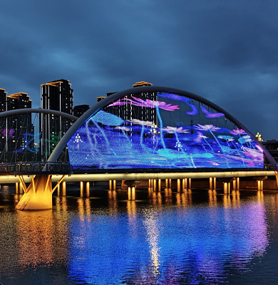 昆玉LED灯具:因其高效节能、长寿命及色彩丰富等特点,被广泛应用于现代河道亮化项目中。